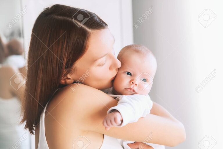 Portrait of Mother and Baby. Beautiful woman holding a baby child in her arms. Image of happy maternity and family.